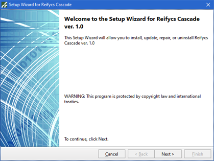 Execute ReifycsSetupWizard. Upon execution, the following screen will appear. (A security warning may be displayed; please proceed with the execution.) After this screen appears, click ‘Next’.